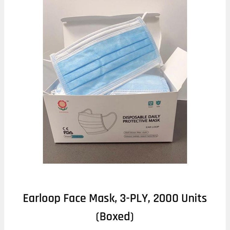 Earloop Face Mask, 3-Ply - 2,000 Units